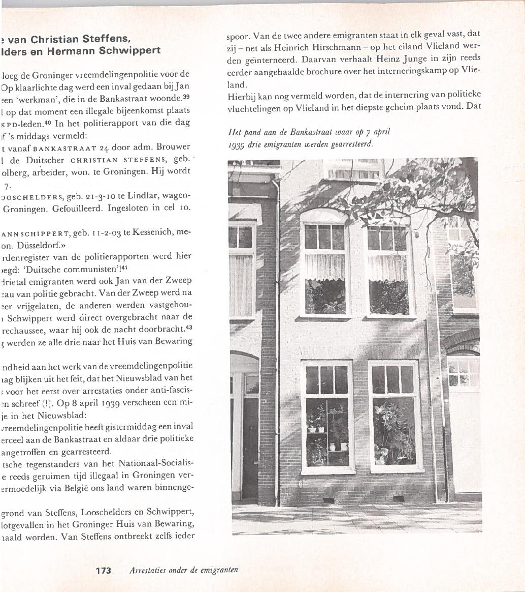 pag. 173 Pand aan de Bankastraat waar op 7 april 1939 drie emigranten werden gearresteerd
