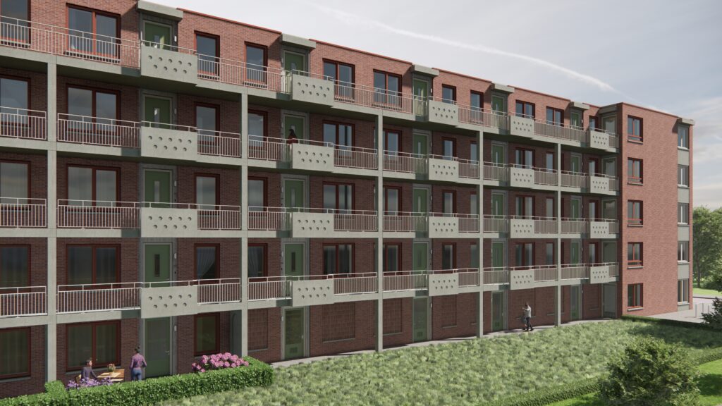 Op de locatie komen 160 nieuwe flats terug. De woningen worden energiezuinig, comfortabel en toekomstbestendig. Aan elke kant van de straat komt een gebouw met 80 appartementen. De gebouwen krijgen vijf verdiepingen. De indeling van de woning en de positionering van het balkon kan verschillen. Alle appartementen krijgen twee slaapkamers.