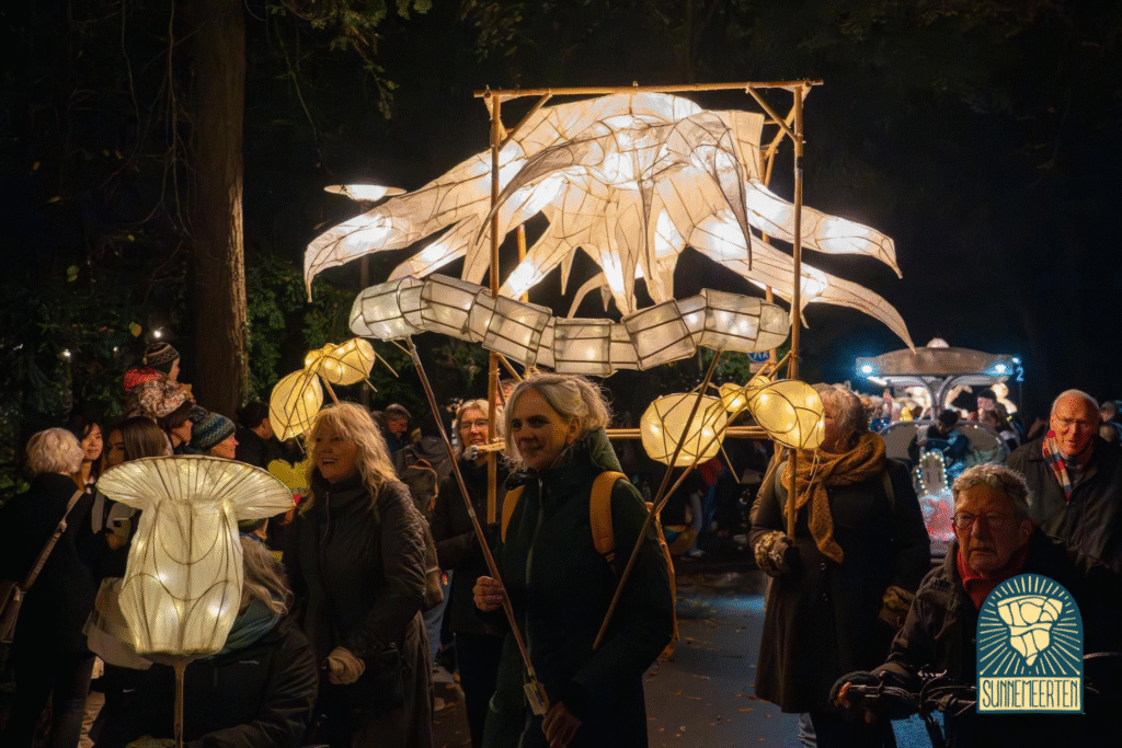 Op 8 november, als het net donker is, trekt de Sunnemeerten Parade door Groningen: een betoverende lichtstoet waarin Stadjers hun zelfgemaakte lichtsculpturen door het centrum van de stad dragen. Ook muzikanten, dansers en performers doen mee. Centraal staan de thema’s delen en verbeelding – in de geest van Sint Martinus, de beschermheilige van Groningen.
