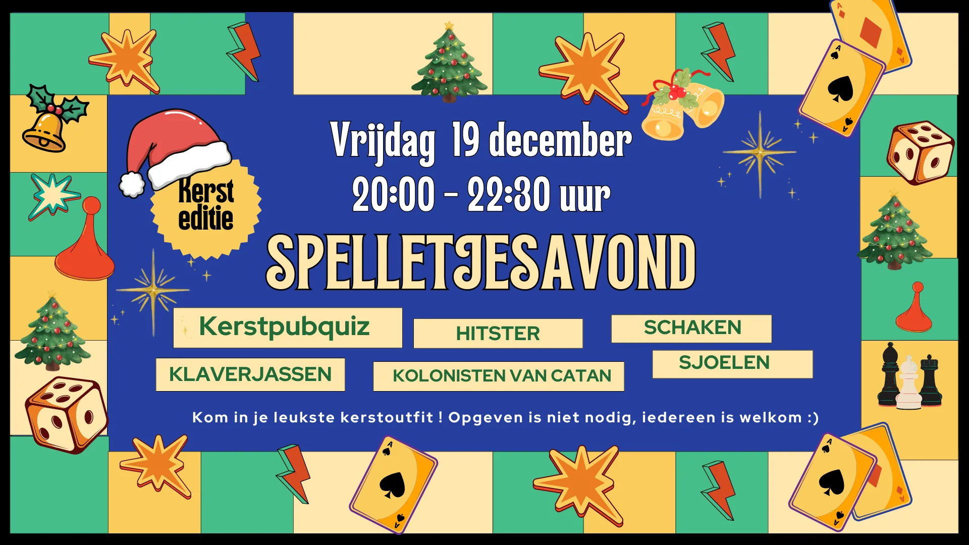 Kom je ook spelen in je mooiste kerstoutfit? Een avond vol kerstklassiekers (muziek), een kerstppubquiz (voor iedereen) en spelletjes staan klaar...